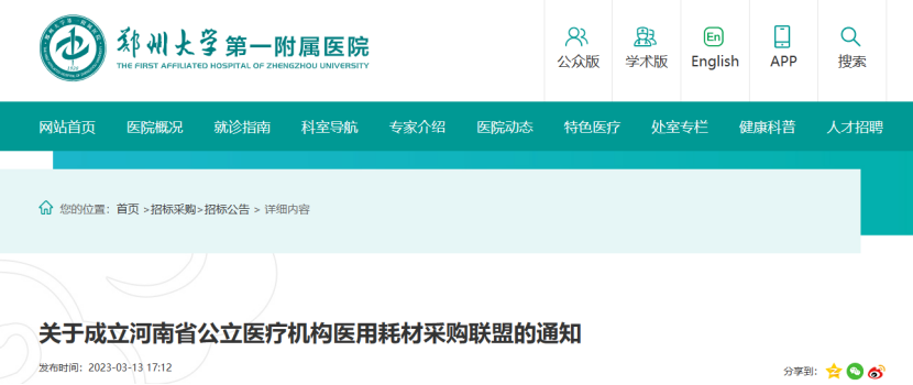 3月13日,河南省公立醫療機構醫用耗材采購聯盟辦公室發布《關于成立河南省公立醫療機構醫用耗材采購聯盟的通知》,鄭州大學第一附屬醫院、河南省人民醫院牽頭成立河南省公立醫療機構醫用耗材采購聯盟。