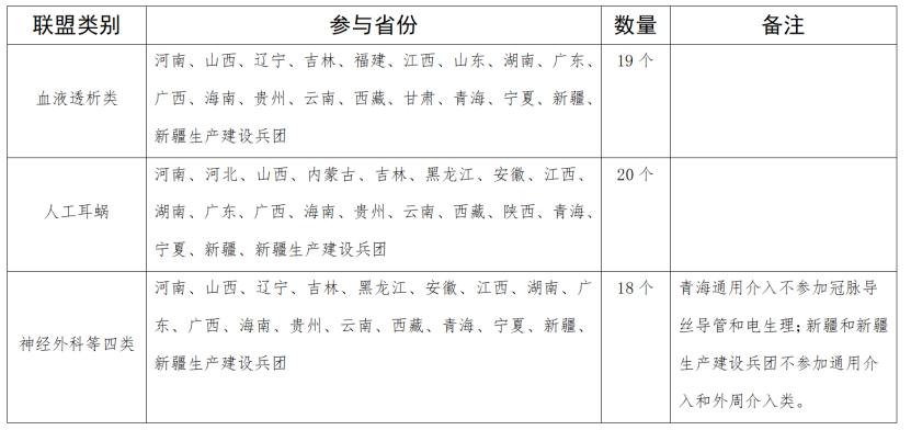 根據去年12月河南省醫保局發布的《關于成立血液透析類等三個醫用耗材省際聯盟的公告》,河南、河北、山西、內蒙古、遼寧、吉林、黑龍江、安徽、福建、江西、山東、湖南、廣東、廣西、海南、貴州、云南、西藏、陜西、甘肅、青海、寧夏、新疆和新疆生產建設兵團等二十四省(自治區、兵團)分別組成三個省際聯盟。
