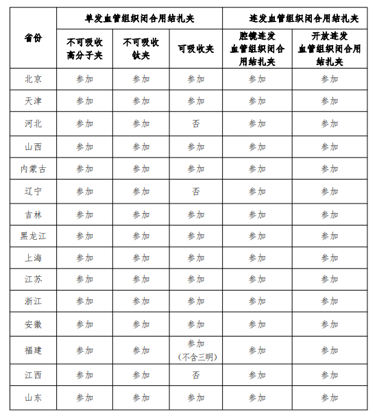 血管組織閉合用結(jié)扎夾聯(lián)盟省份參與情況具體如下: