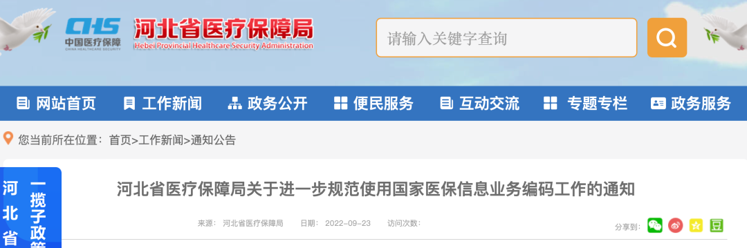 9月23日,河北省醫保局發布《關于進一步規范使用國家醫保信息業務編碼工作的通知》(以下簡稱《通知》), 決定正式啟用國家醫療保障局醫用耗材27位標準編碼,同時取消醫用耗材拼接碼。
