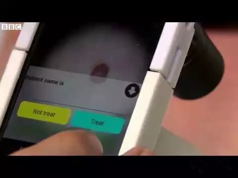 普拉卡什馬努博士,開發出一種利用智能手機為患者口腔進行檢查,并且在屏幕上顯示可疑病灶。該設備,大約是一包口香糖大小,可以幫助偏遠地區的人們進行檢查。