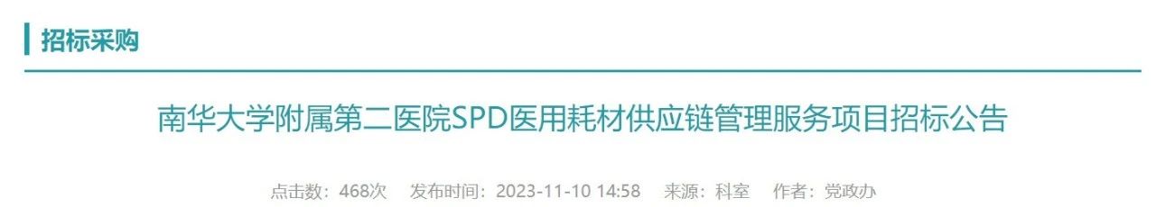 近日,南華大學(xué)附屬第二醫(yī)院發(fā)布SPD醫(yī)用耗材供應(yīng)鏈管理服務(wù)項(xiàng)目招標(biāo)公告。