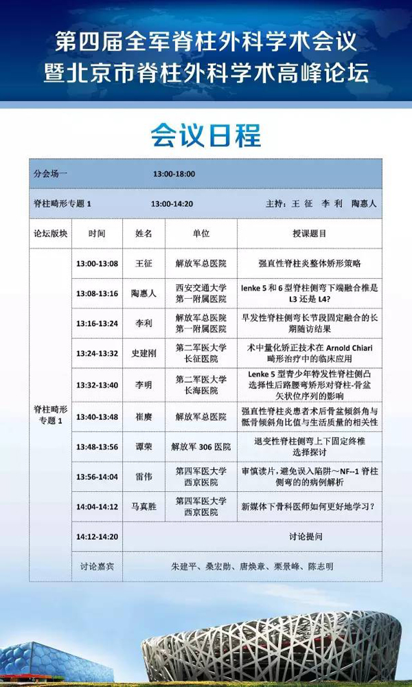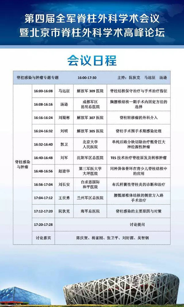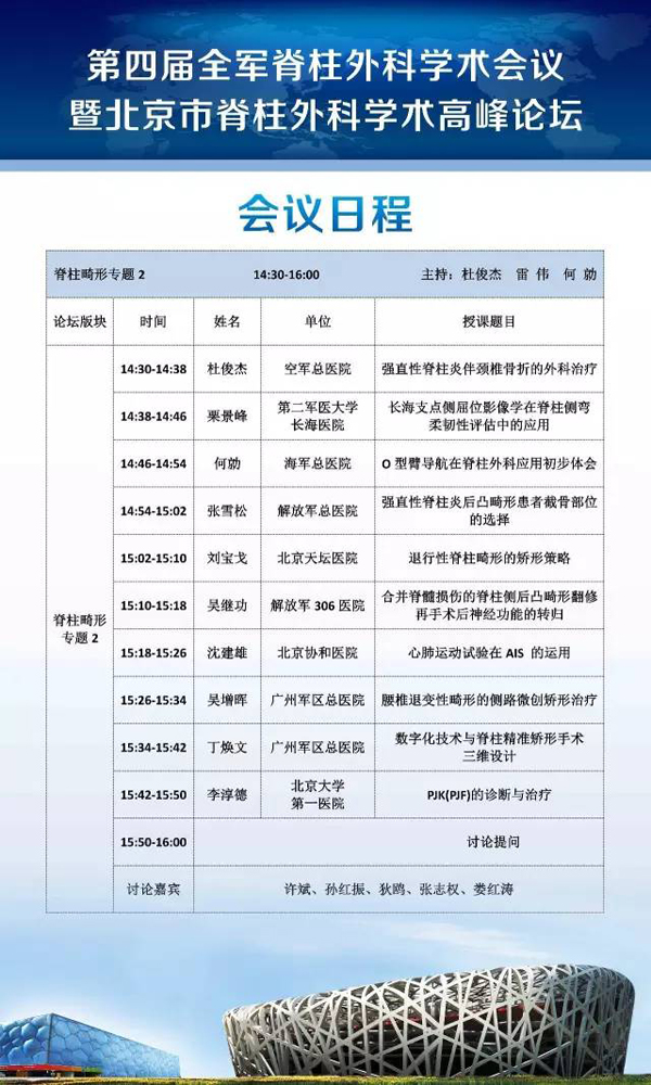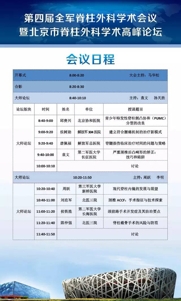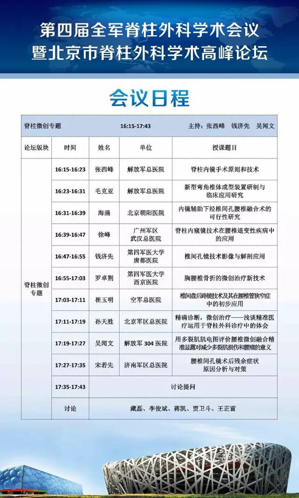 7月2日第四屆全軍脊柱外科學(xué)術(shù)會(huì)議日程