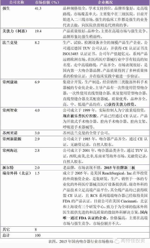 吻合器市場競爭激烈,集中度高,國內第一梯隊已經成型。