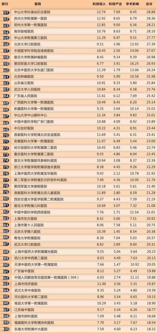 重磅!2015中國醫院科技影響力排行榜(綜合)TOP100出爐