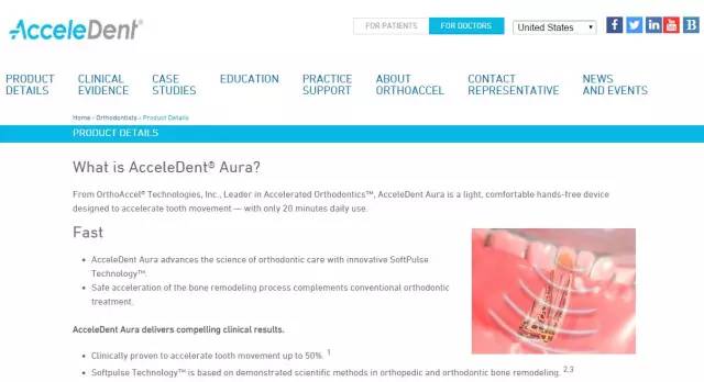 公司的初始產(chǎn)品為AcceleDent,據(jù)其介紹這是第一個(gè)通過美國FDA官方認(rèn)證的牙齒矯正應(yīng)用方案。它主要通過電池供電產(chǎn)生振動(dòng)達(dá)到加快矯正治療的目的。