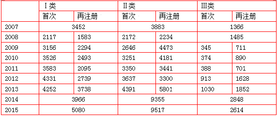 雖然年增長率為正值,不過在這三類醫療器械企業中,第三類械企反而減少了。據了解,2009至2014年間,我國第III類醫療器械生產企業的數量呈穩步上升趨勢,年均增長率約4.3%,但2015年一年,第III類醫療器械生產企業數量減少了8.22%。(這個數據為(2848-2614)÷2848算出)