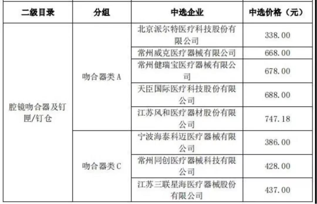 (附圖:湖南省2020年度醫(yī)療機構(gòu)部分醫(yī)用耗材集中帶量采購中選結(jié)果)