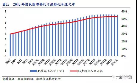 45歲以后人類即進入了慢性病高發的階段,而眾多慢性病的診斷均需要體外診斷試劑。2016年我國45歲以上人口數量已達5.36億,占比達38.22%,并且占比仍在提升,據聯合國預測,我國45歲以上人口占比在2040年前都將處于持續快速提升之中。人口老齡化推升慢性病發病率從而帶來診斷需求的提升,而經濟發展水平提升醫療費用支出增長和技術進步檢測手段的提升則是帶來了診斷需求的快速釋放。