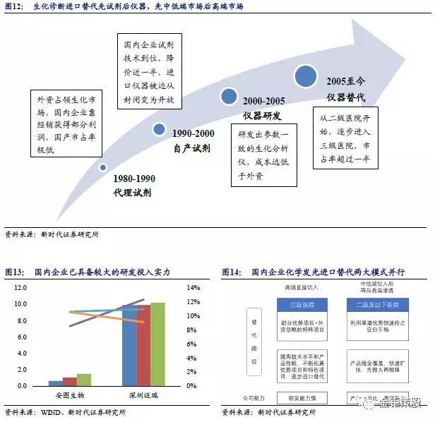 生化診斷發展早,試劑進口替代率已超60%。生化診斷也經歷了從外資壟斷向國內主導的進口替代發展歷程。80-90年代外資即進入了中國占據了國內市場,國內企業技術基礎差只能通過經銷外資產品來獲取收益,國內生化市場基本被外資壟斷。由于生化診斷儀器和試劑的封閉性相對不強,國內企業通過技術研發開發出了相應的試劑從而開啟了進口替代的進程。