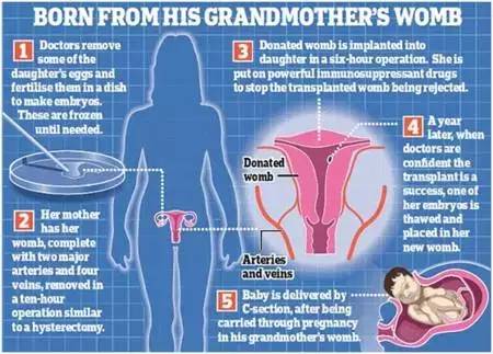 4.大約1年后,如果醫生認為移植子宮存活和功能良好,則會將一個預先冷凍的胚胎解凍植入新移植子宮內。5如果一切順利,胎兒發育生長良好,胎兒將在孕育6個月成熟后的某個階段經過剖腹產娩出。