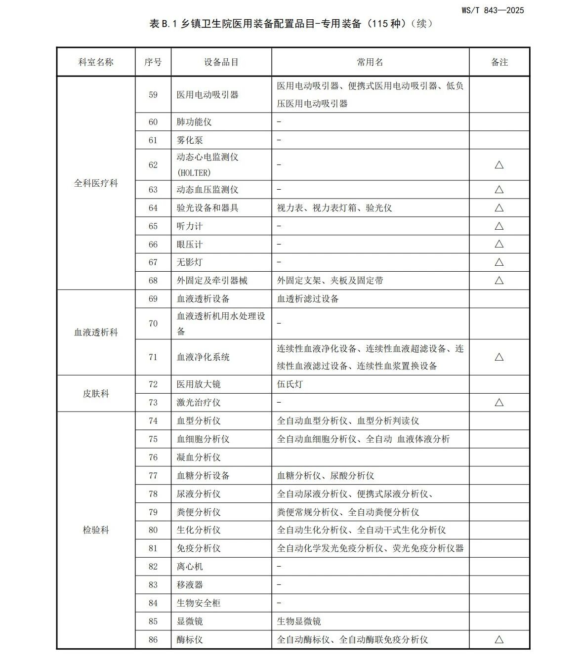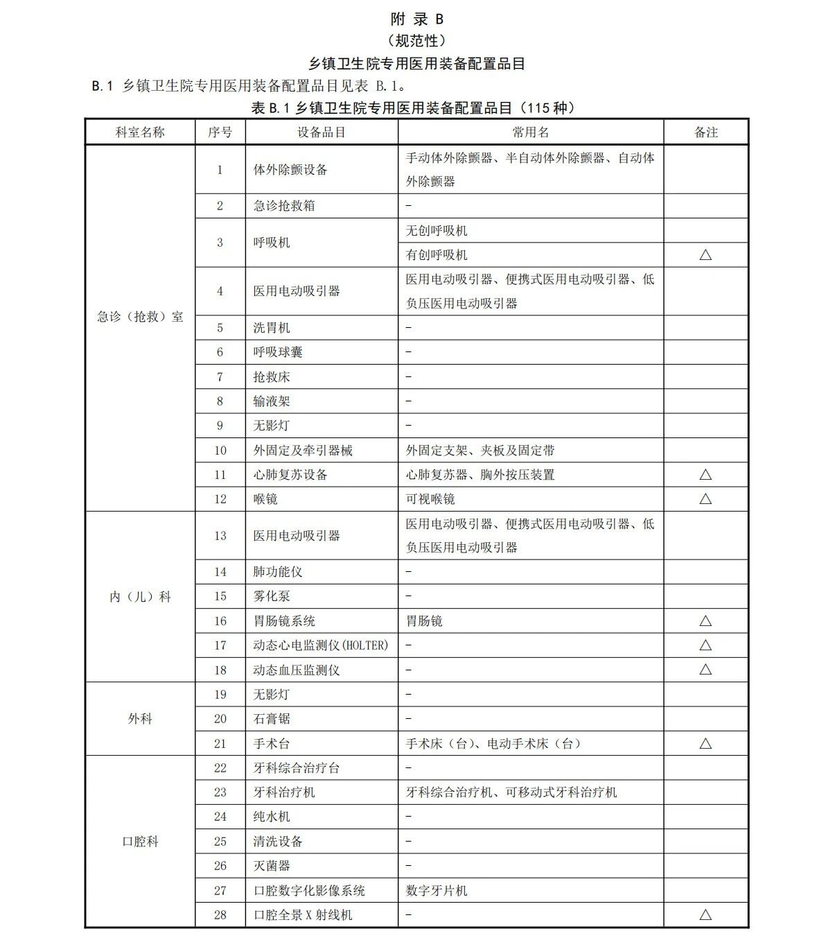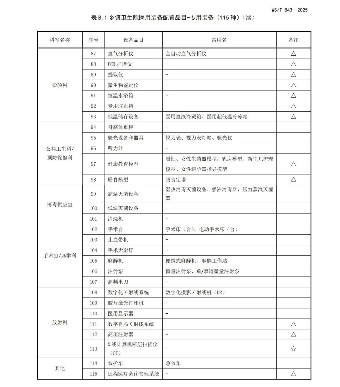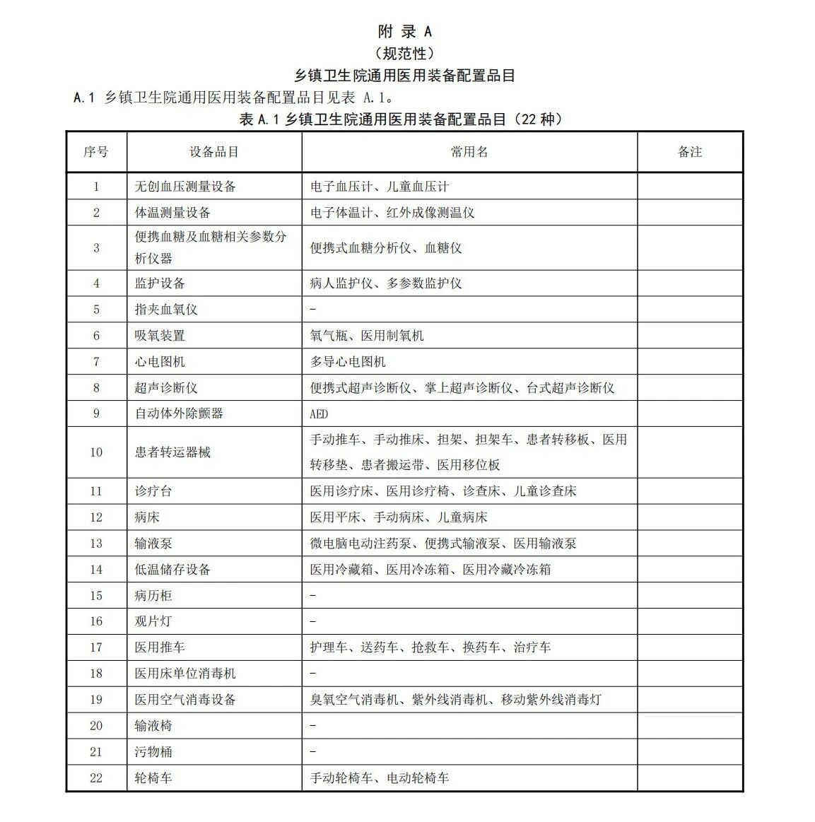 國家衛健委曾于今年4月發布“推薦性衛生行業標準《鄉鎮衛生院醫用裝備配置標準》(以下簡稱《標準》)的通告”,該標準于2025年10月1日起正式施行。