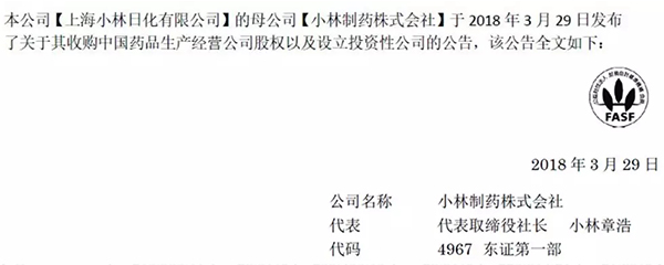 ▍小林制藥收購(gòu)中國(guó)械企