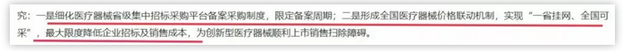 國家醫(yī)保局強調(diào),將細化醫(yī)療器械省級集中招標采購平臺備案采購制度,限定備案周期;形成全國醫(yī)療器械價格聯(lián)動機制,實現(xiàn)“一省掛網(wǎng)、全國可采”,最大限度降低企業(yè)招標及銷售成本。