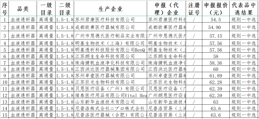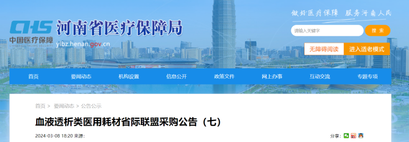 3月8日,河南省醫保局發布《血液透析類醫用耗材省際聯盟采購公告(七)》,公布血液透析類醫用耗材省際聯盟采購中選結果及血液透析類醫用耗材省際聯盟采購中選產品供應清單。