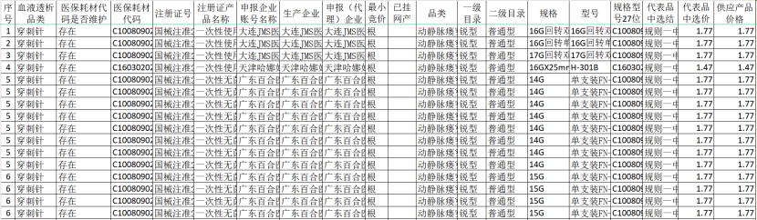 采購品種包括:血液透析器、血液濾過器、血液凈化裝置體外循環管路、動靜脈瘺穿刺針和透析用留置針。