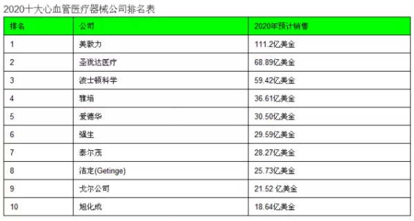 誰將是2020年全球前十大心血管醫(yī)療器械公司