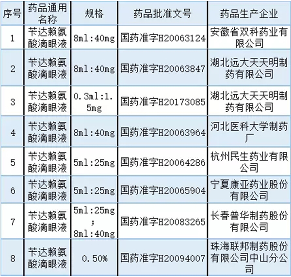 附:芐達賴氨酸滴眼液品種名單