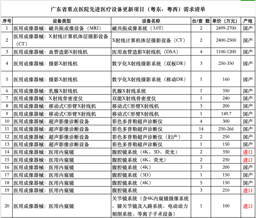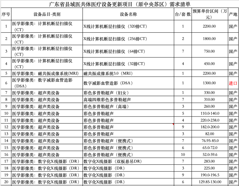 2月24日,廣東省縣域醫共體醫療設備更新項目(原中央蘇區)、廣東省重點醫院先進醫療設備更新項目(粵東、粵西)啟動采購需求調查征集工作。