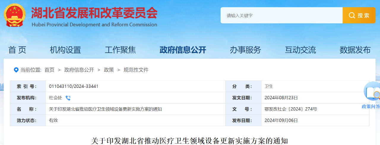 目前,大規(guī)模設(shè)備更新已進(jìn)入采購階段,各級財政支持開始陸續(xù)落地,此次方案也公布了湖北圍繞醫(yī)療設(shè)備更新的財政保障舉措。