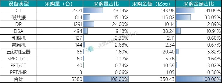 賽柏藍器械聯合高端醫械院數據中心對2025年上半年全國醫療設備采購信息進行了系統化采集和整理。測算結果顯示,2025年上半年全國醫療設備重點品種采購量達5380臺,市場規模達350.43億元。