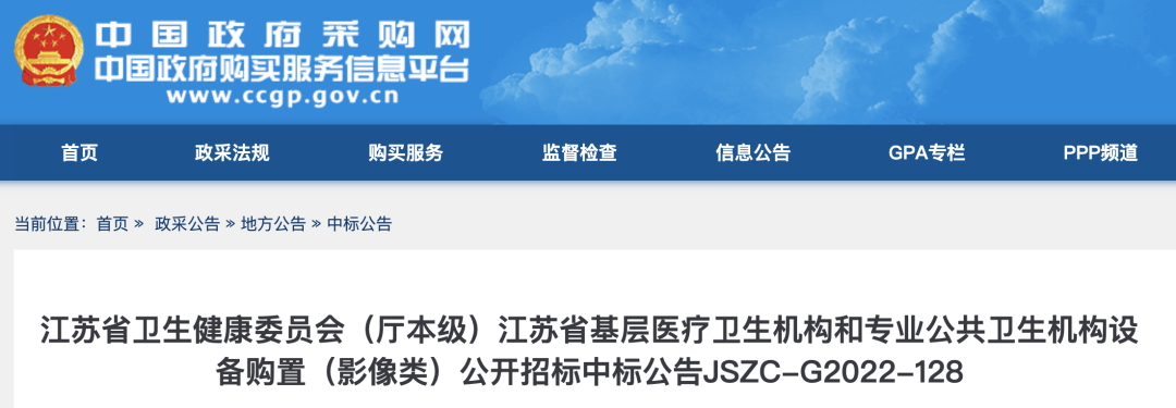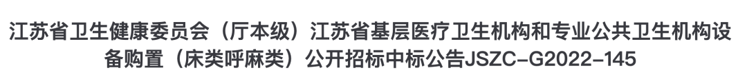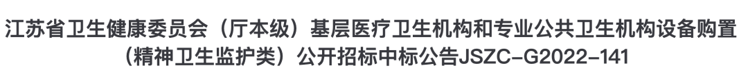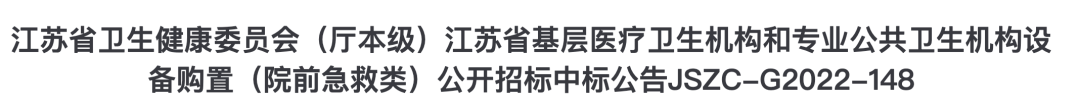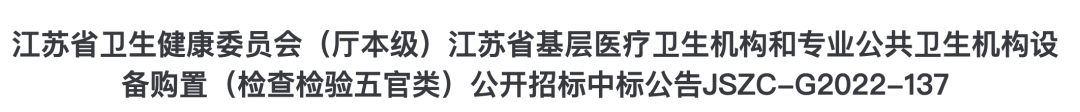 近日,江蘇省衛生健康委員會(廳本級)江蘇省基層醫療衛生機構和專業公共衛生機構設備購置項目中標結果公布。