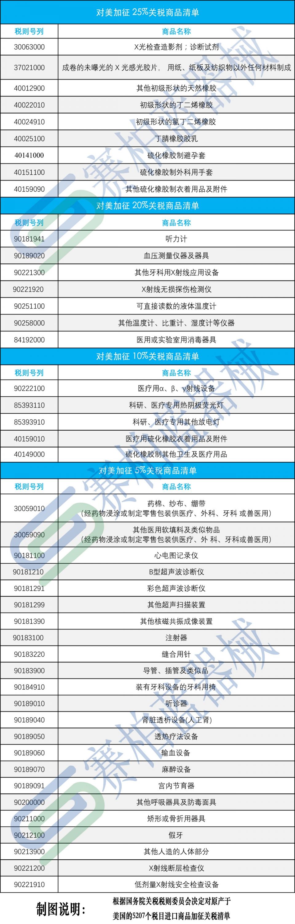 具體來看,加征25%關稅的商品共2493個,涉及醫(yī)療器械的有X光檢查造影劑;診斷試劑,以及X光感光膠片、外科用手套等耗材;