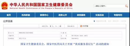 為深入貫徹落實黨的十九大和《“健康中國”2030規劃綱要》精神,持續提升基層服務能力,改善服務質量,國家衛生健康委、國家中醫藥局決定開展“優質服務基層行”活動。現將有關事項通知如下: