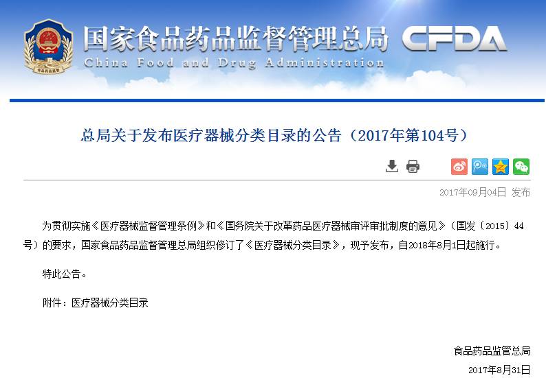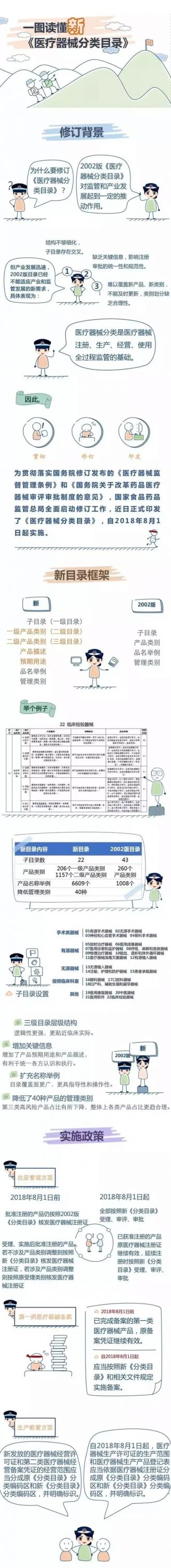 距CFDA發布新版《醫療器械分類目錄》過去了將近1年的緩沖時間,按照之前的公示:新版《醫療器械分類目錄》將在2018年8月1日正式實施。