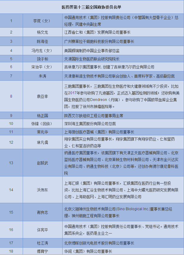 第十三屆全國(guó)人大政協(xié)兩會(huì)召開(kāi)在即,醫(yī)療器械圈有哪些代表、委員有了變動(dòng)?賽柏藍(lán)器械整理如下: