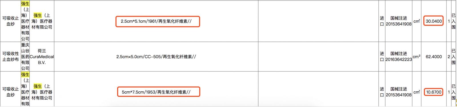 從報價來看,強生的兩種規格的可吸收止血紗的報價分別為10.67元和30.04元(單位:平方厘米)。