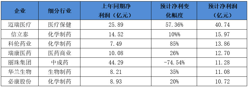 ▍7家藥企凈賺超10億,3藥企增長超1倍