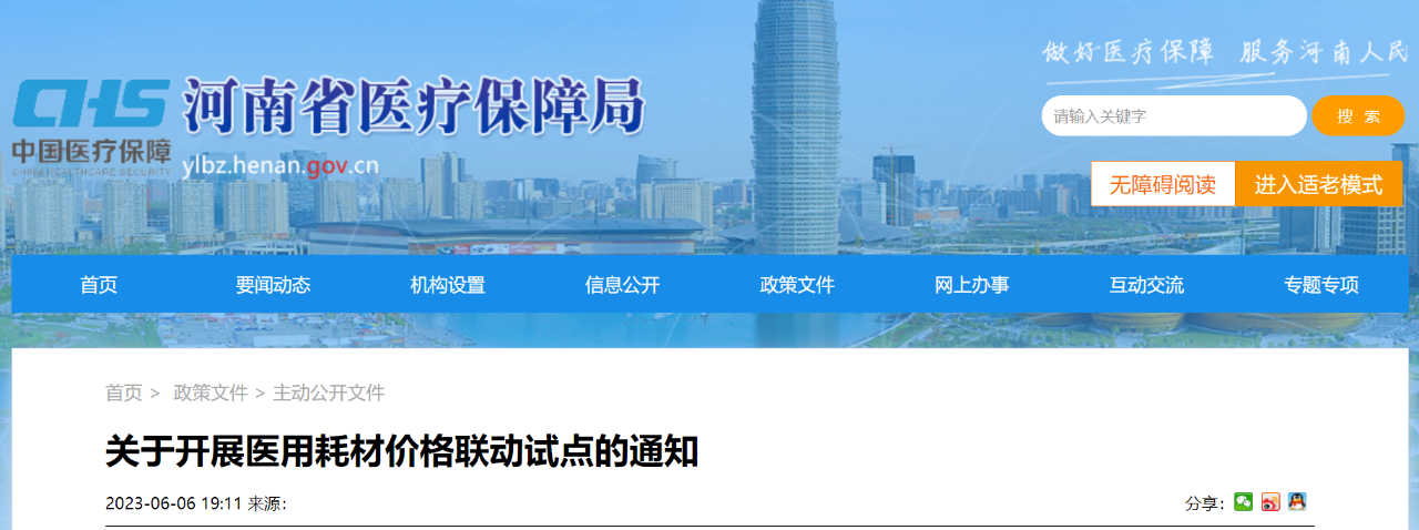 6月6日,河南醫(yī)保局發(fā)布《關(guān)于開(kāi)展醫(yī)用耗材價(jià)格聯(lián)動(dòng)試點(diǎn)的通知》(簡(jiǎn)稱《通知》),首批選取了骨科類醫(yī)用耗材進(jìn)行試點(diǎn)。