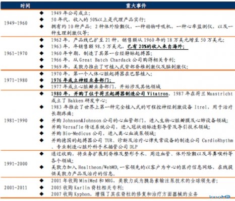 圖1:美敦力發(fā)展歷程中的主要事件