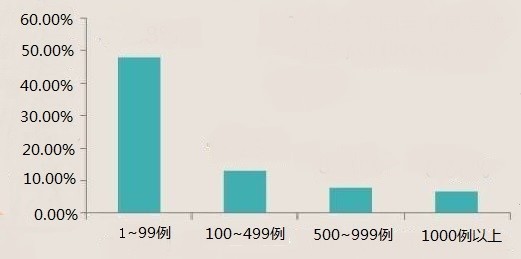 而2011年8月出臺的《心血管疾病介入診療技術管理規范(2011年版)》允許滿足規范要求硬性條件和相關規定的二級醫院開展心血管介入治療手術。而事實也表明,在2013年開展1~99例的醫院,PCI手術數年增長率達48.08%,遠遠超過全國平均的增速(圖4)。