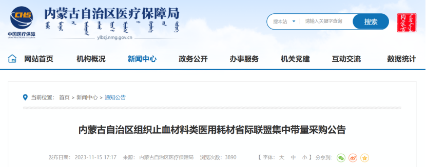 11月15日,內(nèi)蒙古醫(yī)保局發(fā)布《內(nèi)蒙古自治區(qū)組織止血材料類醫(yī)用耗材省際聯(lián)盟集中帶量采購公告》(附文末),將開展止血材料類醫(yī)用耗材省際聯(lián)盟集中帶量采購。