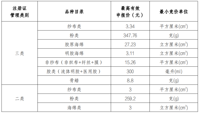 本次集中帶量采購品種范圍為獲得有效中華人民共和國醫(yī)療器械注冊證,參照國家醫(yī)療保障局醫(yī)保醫(yī)用耗材分類與代碼為C1501和C140805開頭的止血材料類醫(yī)用耗材。