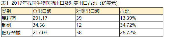 另外,根據商務部海關的數據統計,2017年我國對美出口的原料藥、藥品制劑、醫療器械規模分別為39、12、58億美元,分別占我國原料藥、藥品制劑、醫療器械出口總額的13%、35%、27%。因此,由于對美出口規模不大,我國生物醫藥產業整體受中美貿易戰影響有限。