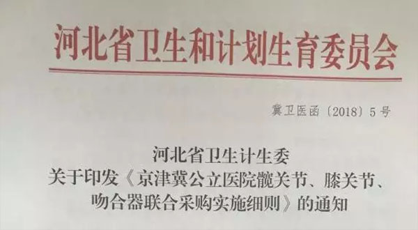 2月1日,河北省衛計委發布了《京津冀公立醫院髖關節、膝關節、吻合器聯合采購實施細則》的通知(以下簡稱《細則》)。