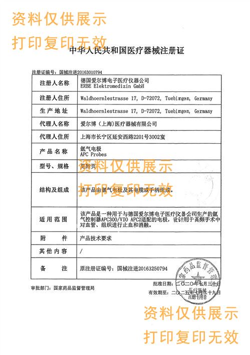 德國愛博erbe氬氣噴頭20132-181適用于APC-Sonde 2200 SC,規格:直徑2.3mm 長度:2.2m