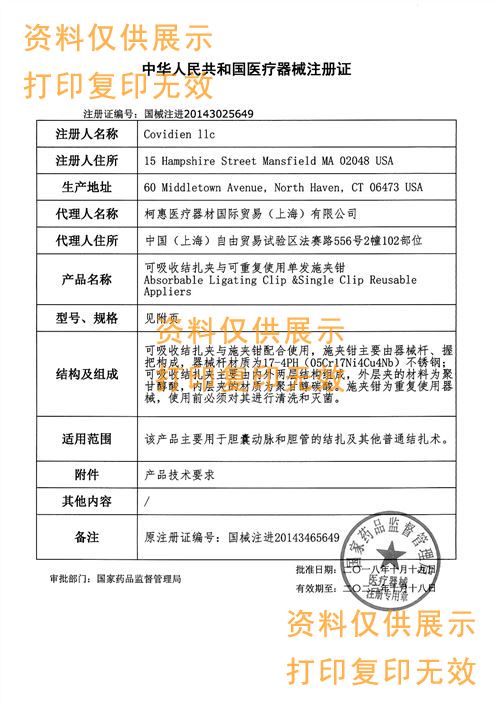 注冊證號:國械注進20143025649