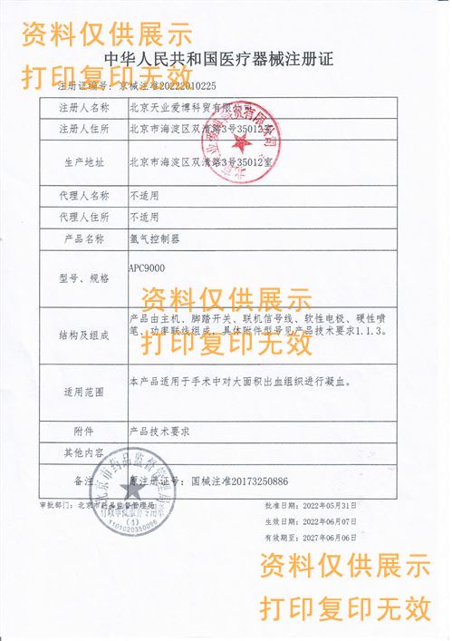 4、氬氣流量調節范圍為:0.1--12L/min(誤差小于±0.1 L/min),內鏡下治療時,氬氣流量安全范圍限定為0.1--3.0L/min,氬氣流量可以隨著輸出功率的變化而自動變化,無需單獨調節,達到智能化輸出