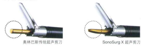 SonoSurg X 超聲剪刀先端與奧林巴斯傳統(tǒng)產(chǎn)品相比更細長,提高了精細抓取和分離操作的簡便性。
