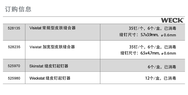威克皮膚縫合器配合威客拆釘器使用,效果更好。